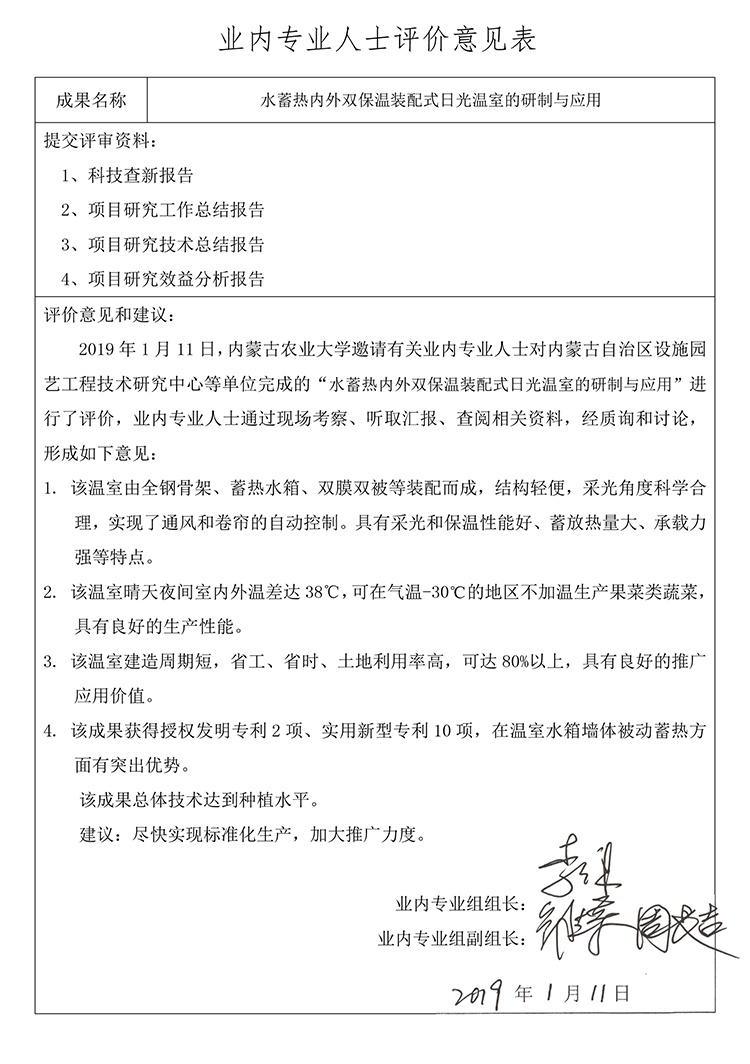 研討會期間,100多位行業同仁就內蒙古中天科技有限公司設計建設的水蓄熱內外雙保溫裝配式日光溫室進行了實地考察與交流研討,一致認為成果總體技術已具備良好的推廣價值。內蒙古農牧頻道、包頭新聞等媒體進行了大量報道。