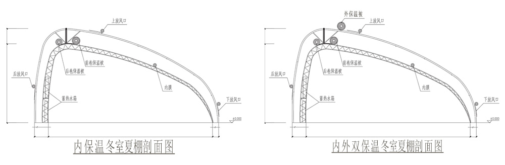 水蓄熱內(nèi)(雙)保溫裝配式冬室夏棚具有以下特點(diǎn):